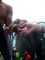 We arrived at the boat, got our equipment set again, and got ready for another dive. The first dive of the day we were diving a plane wreck. I felt good on the boat and getting into the water. We descended and started exploring. Again we saw a lot of different kinds of fish. We got to the wreck and explored it a little. We went inside, which I didn’t like at all. I’m not usually claustrophobic, but I felt like I couldn’t breathe when I was inside the plane. There was just something too weird about being under water and inside a plane. I was relieved when I exited. On top of the wreck were 2 huge sea stars. They had long tentacles with huge spines. It was an awesome sight.