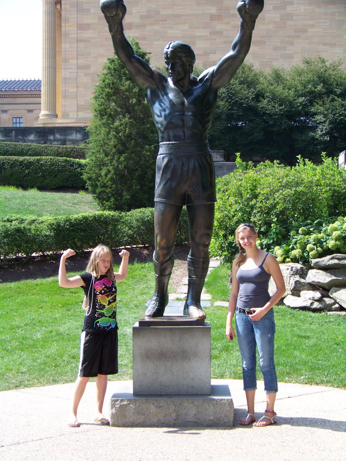 We wanted to make one last stop in Philly before we headed back to Hershey. Jim wanted to bring the girls to the Philadelphia Museum of Art. This is not because he is a huge lover of art. It is because of the Rocky movies. This is where the stairs scene was filmed. At the top of the many, many steps, you find 2 feet on the ground. That’s where Rocky stood with his arms raised in his triumphant pose. There is also a statue of Rocky. Of course, these are great photo ops and Jim took full advantage. Notice… I said Jim. I used Van’s nap as an excuse not to climb the steps. I also said I would drive around while they went to the top so we didn’t have to worry about parking. And when I said drive around, I literally meant drive around. The museum sits on one side of a round-about. I drove around it 3 times while they were on the steps. During this time I really felt like a Griswold. It reminded me of their European Vacation and how they got trapped on a round-about in France.