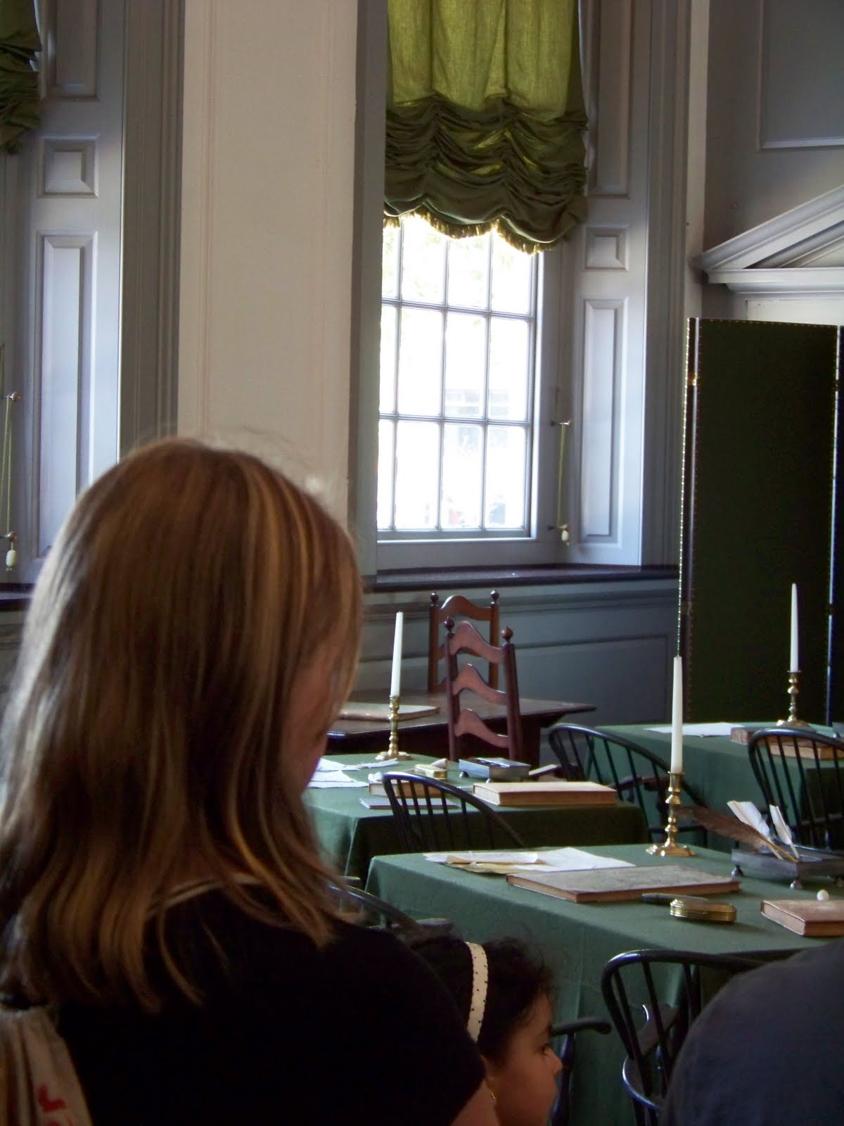 The tour was fascinating for all of us…ok, not so much for Van. He mainly wanted to play with his cars. Someday, maybe, he’ll appreciate looking at the pictures at least. I’m sure he’ll have some history project he can use them for. It was a little overwhelming to realize we were in the place where our Founding Fathers signed the Declaration of Independence, voted to fight for our country’s freedom, and drafted the Constitution. When we went to the second floor, we sat in a ballroom. We learned that during a time in the Revolution, the British controlled the Philadelphia area and that ballroom was used as a holding area for injured American soldiers who were prisoners of the British. The soldiers had little food, inadequate clothing, were given a thin layer of dirty hay for a bed, and had almost no heat. Most did not make it through. Their bodies were carried out and across the street, to what is now Washington Square, where they were buried in shallow graves. Hearing their story was very humbling. Once again, I was reminded that freedom is not free. It comes at a great cost, and that cost is still being paid today as our soldiers are stationed and fighting around the world.