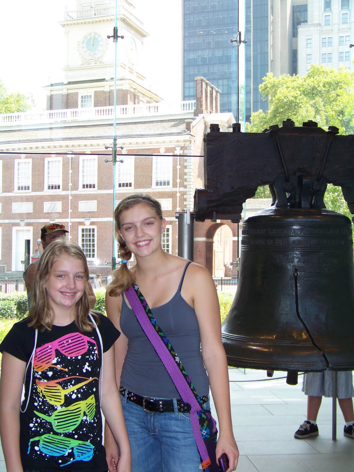When we arrived in Philadelphia, I picked up our tickets four our tour of Independence Hall while Jim found a place to park Grizzy (not an easy task in downtown Philly). I met the rest of the family out front of the Hall, we went through security, looked around the park a bit, and got into line for our 11:45 tour. The tour guide called for the 11:30 tour. Then, to our good fortune, he said he had a few spot left on this tour. We were able to join them. That was much better than standing out in the sun for another 15 minutes.