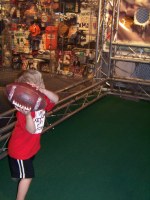 As we finished our tour, there was an area for play. Jim sat down and tried out Madden 2011. Bre, Brooke, and Van all tried their hands at throwing touchdowns. Each eventually succeeded. It was fun to watch them all play. There were also trivia games and a “Guess the Play” game. Overall, the Football HoF was very family friendly.